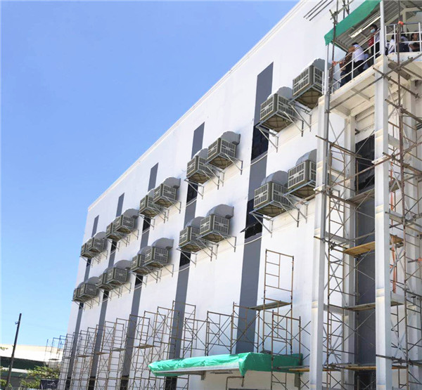 使用福泰水簾風(fēng)機(jī)一體機(jī)(水簾和負(fù)壓風(fēng)機(jī)合成后安裝在廠房的一邊,送風(fēng)距離遠(yuǎn),降溫效果明顯)這些降溫方式適合于工廠,耗電量低同時(shí)可以改善工作環(huán)境。不同的廠房車間對(duì)換氣次數(shù)、噪音要求、投資運(yùn)算有不同的要求,對(duì)于客戶的需求,我們可以提供不同型號(hào)、不同款式的降溫產(chǎn)品和工廠車間降溫解決方案。