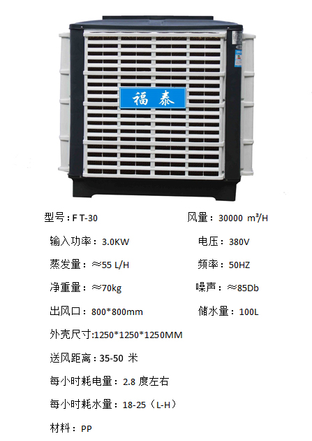 福泰環(huán)保空調(diào)性能穩(wěn)定在越炎熱的天氣下降溫的效果越好。適用于開(kāi)敞式及半開(kāi)敞式環(huán)境,能夠直接輸送自然風(fēng)及輸送降溫后的涼風(fēng)。室外新鮮空氣經(jīng)福泰蒸發(fā)式冷氣機(jī)過(guò)濾、降溫后向室內(nèi)源源不斷的大量輸送,將室內(nèi)帶有異味、粉塵和混濁悶熱的空氣排出室外,同時(shí)兼顧換氣降溫及增加空氣含氧量等多種效果。